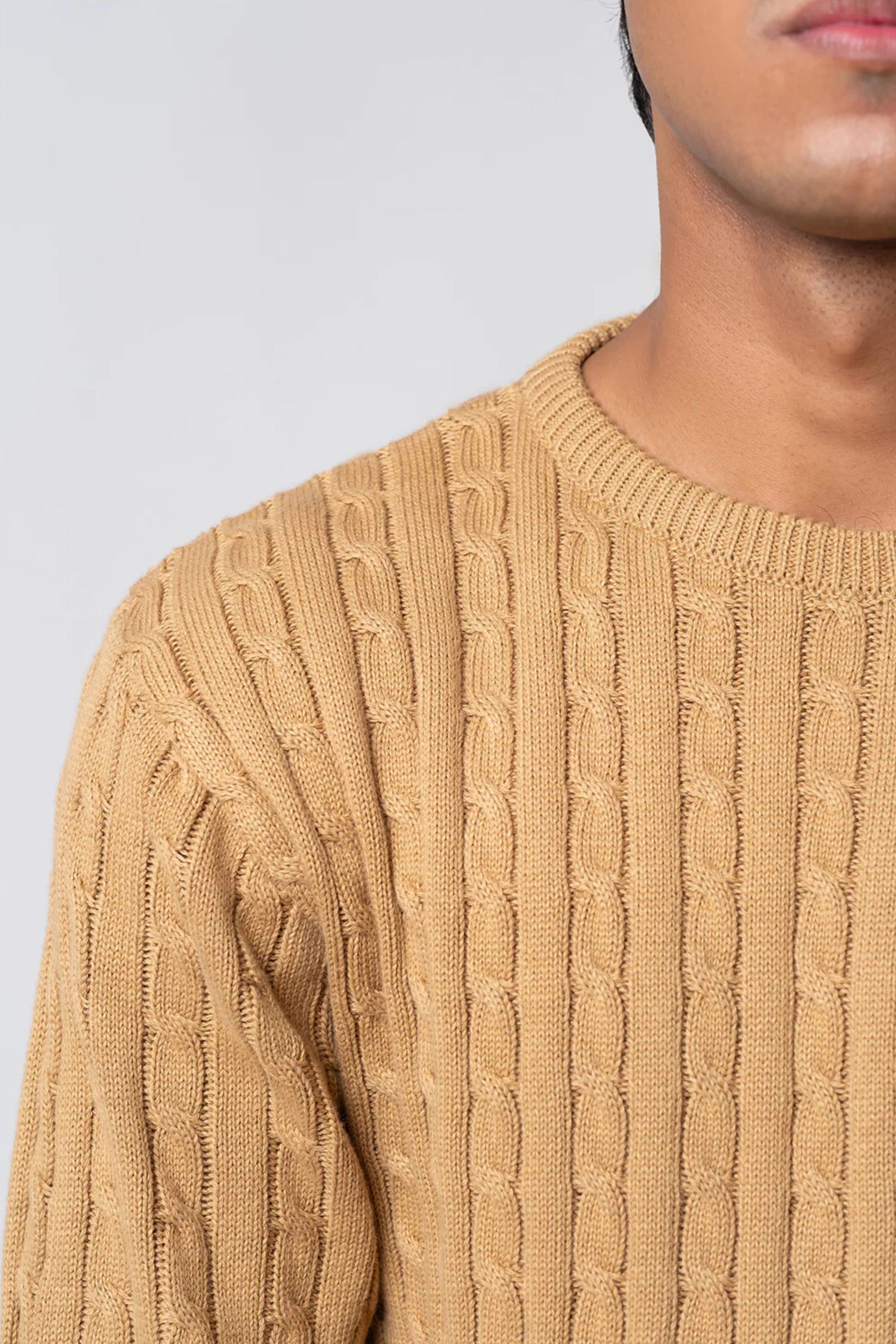 Men’s Crew Neck Cable Knit Sweater - Beige