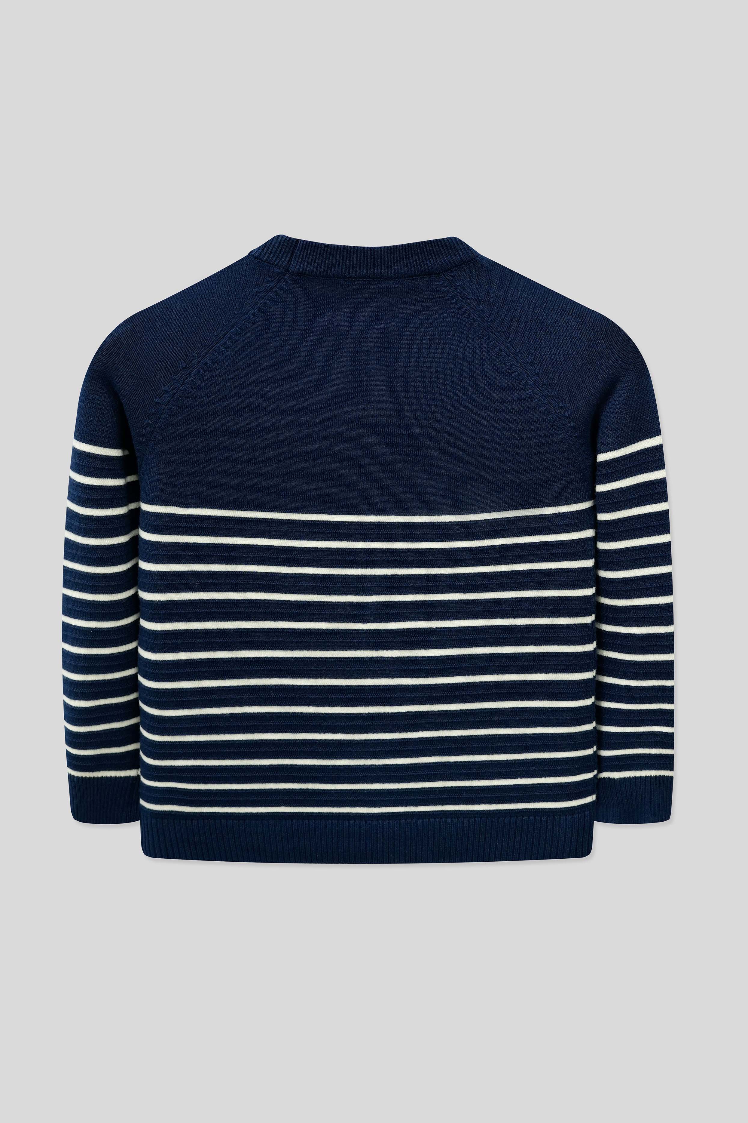 The classic round-neck design paired with the deep Navy shade gives it a smart, timeless look that blends easily with both casual and semi-formal outfits. A must-have winter essential for every young boy’s wardrobe.