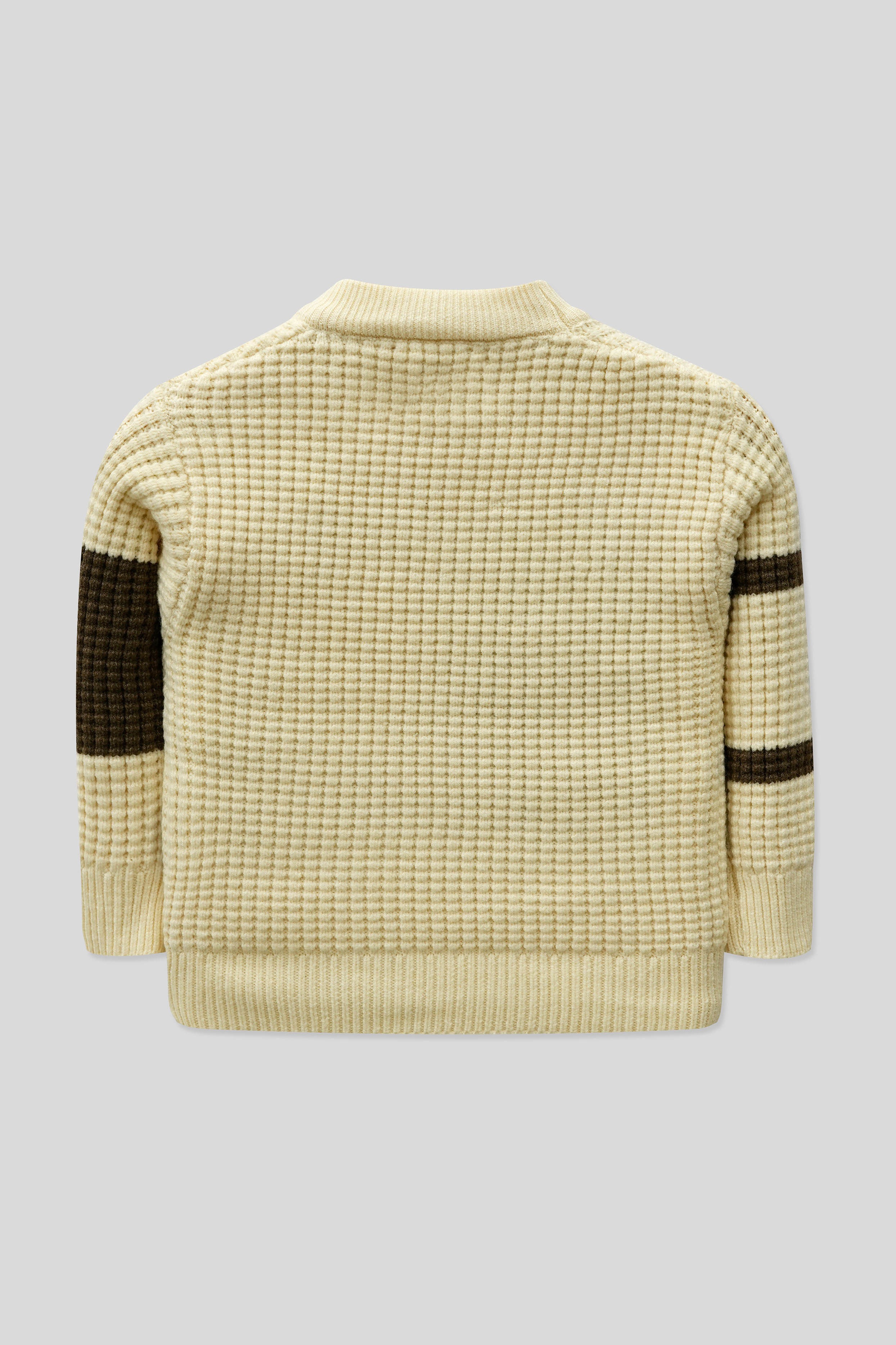 The classic round-neck design and rich Brown color give it a timeless look that pairs easily with shirts, tees, or trousers. A must-have winter essential for every young boy’s wardrobe.