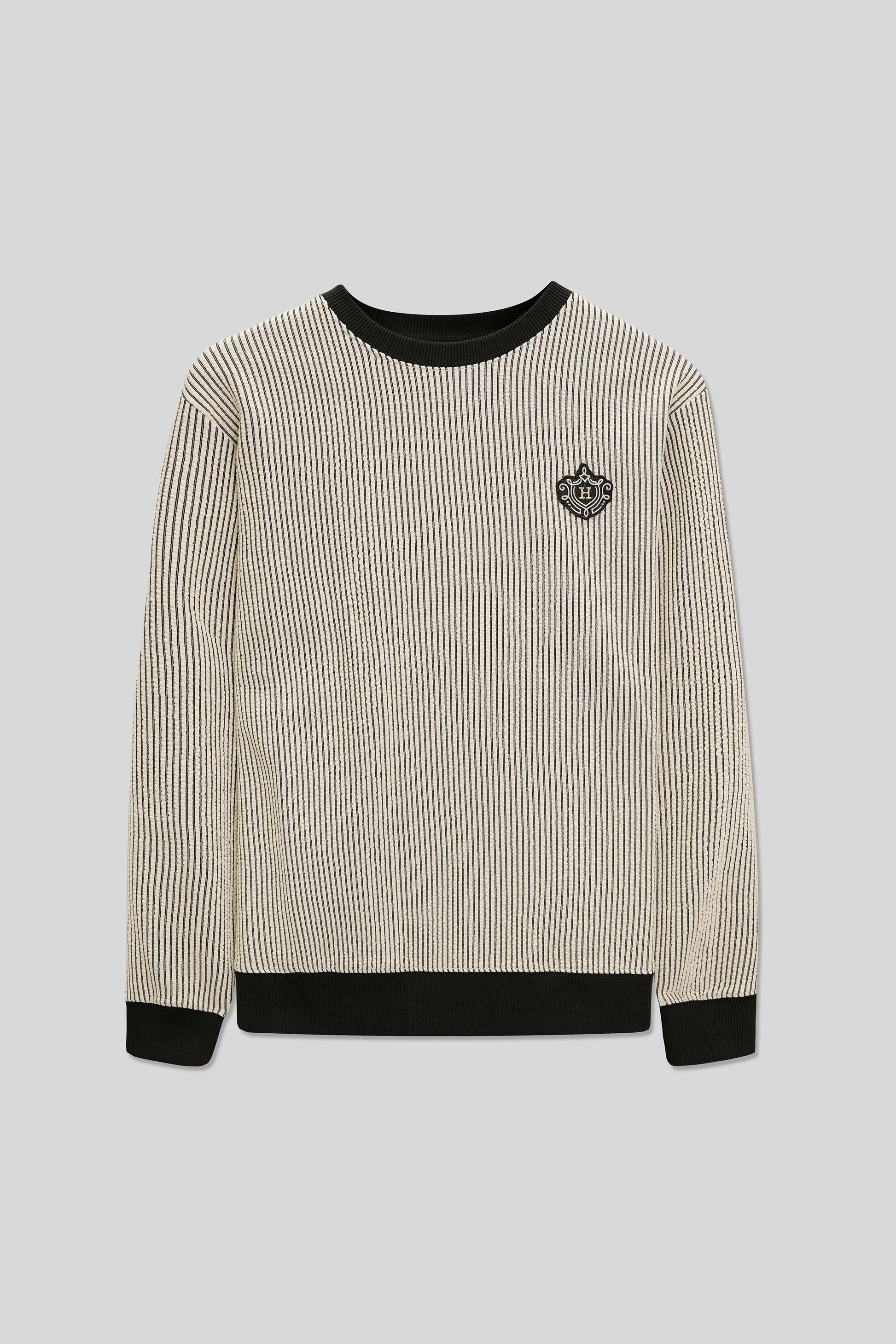 - Design:Β Features a classic crew neck with ribbed cuffs and hem for a clean and polished look