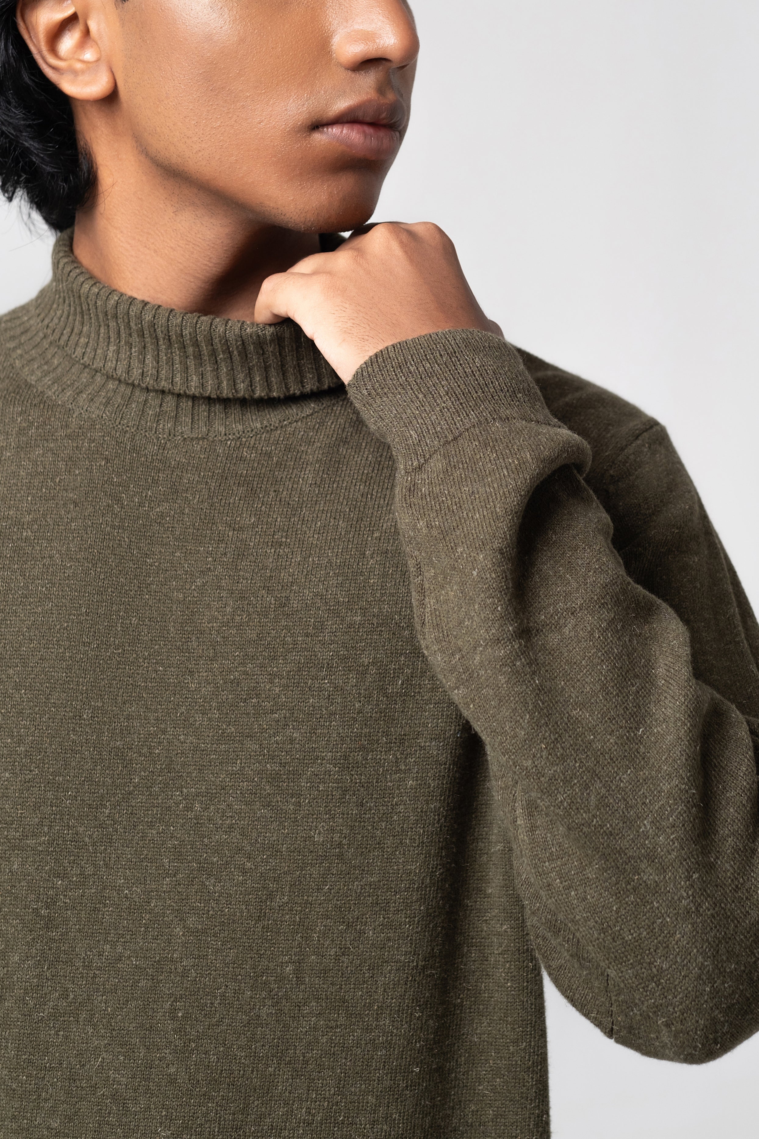 The turtle neck design provides a sleek, elevated look that transitions effortlessly from casual to smart wear. The olive hue adds a subtle, earthy tone that pairs perfectly with jeans, chinos, or tailored trousers.