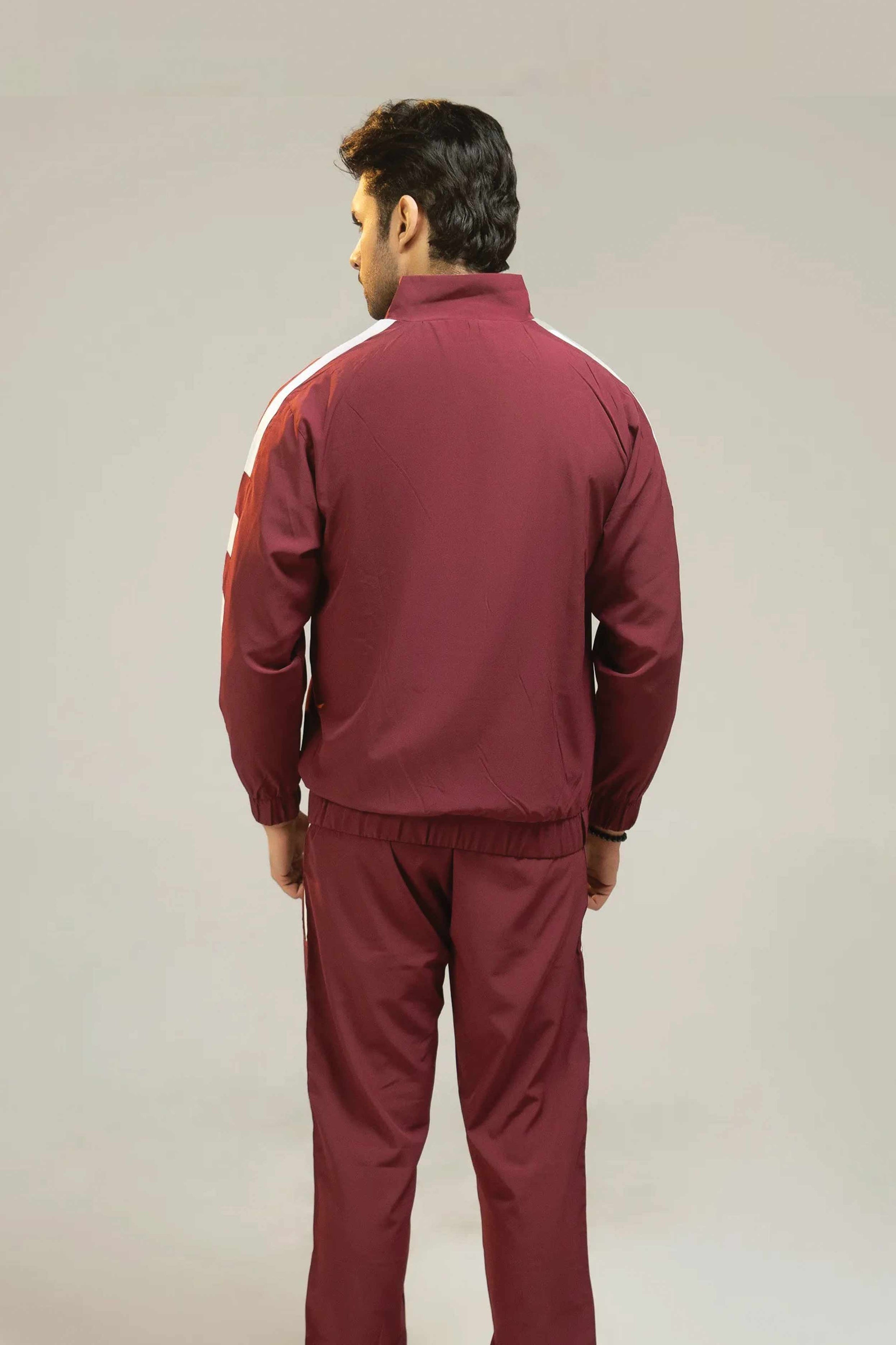 What makes this tracksuit stand out is its rich maroon color, which adds a touch of sophistication and elegance to your outfit. The deep, bold hue ensures that you look sharp and stylish whether you're at the gym or out with friends. The color complements a wide variety of accessories and footwear, making it easy to style for any occasion.