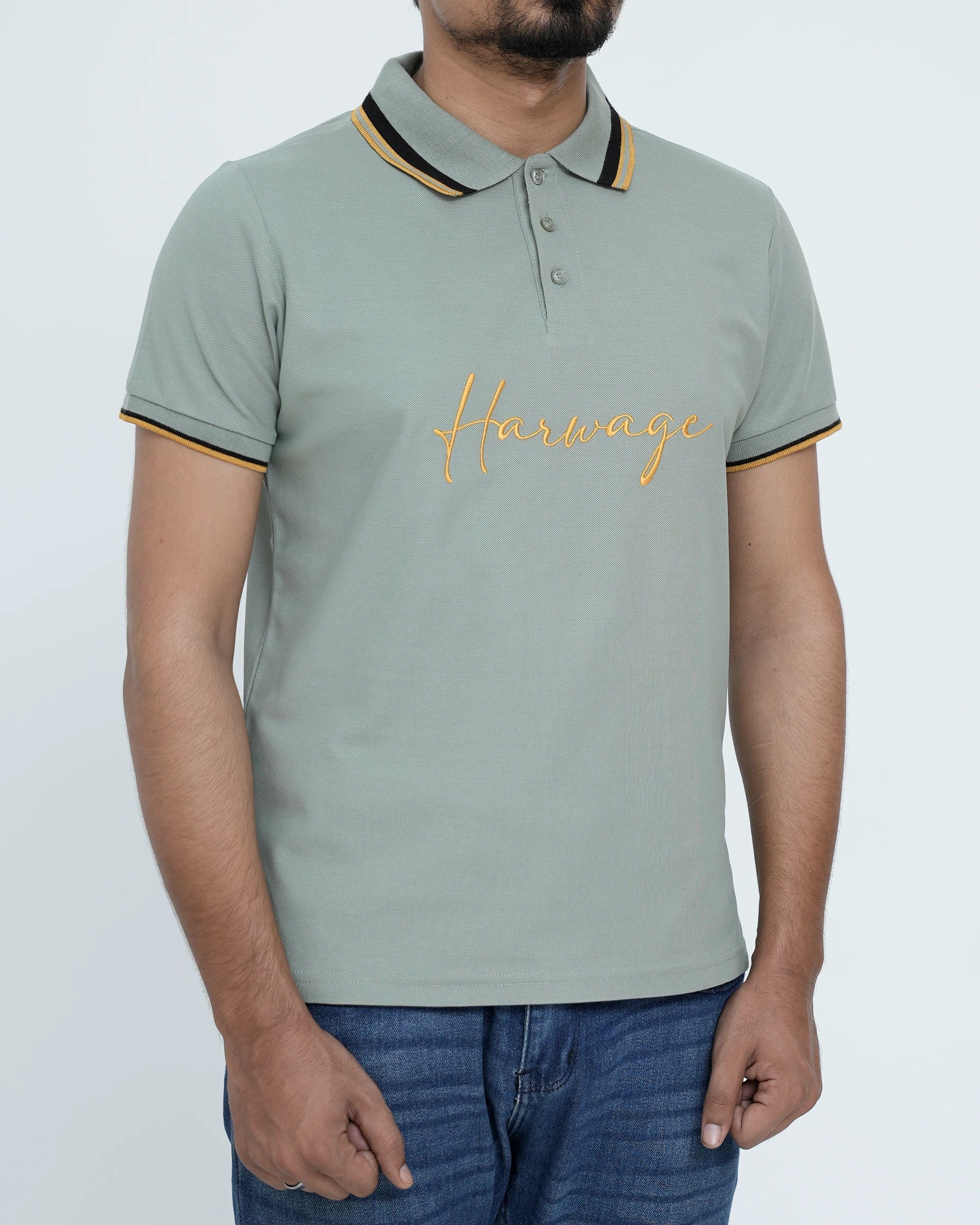 Check Out: Men Contrast Tipping Polo Shirt - Olive Branch