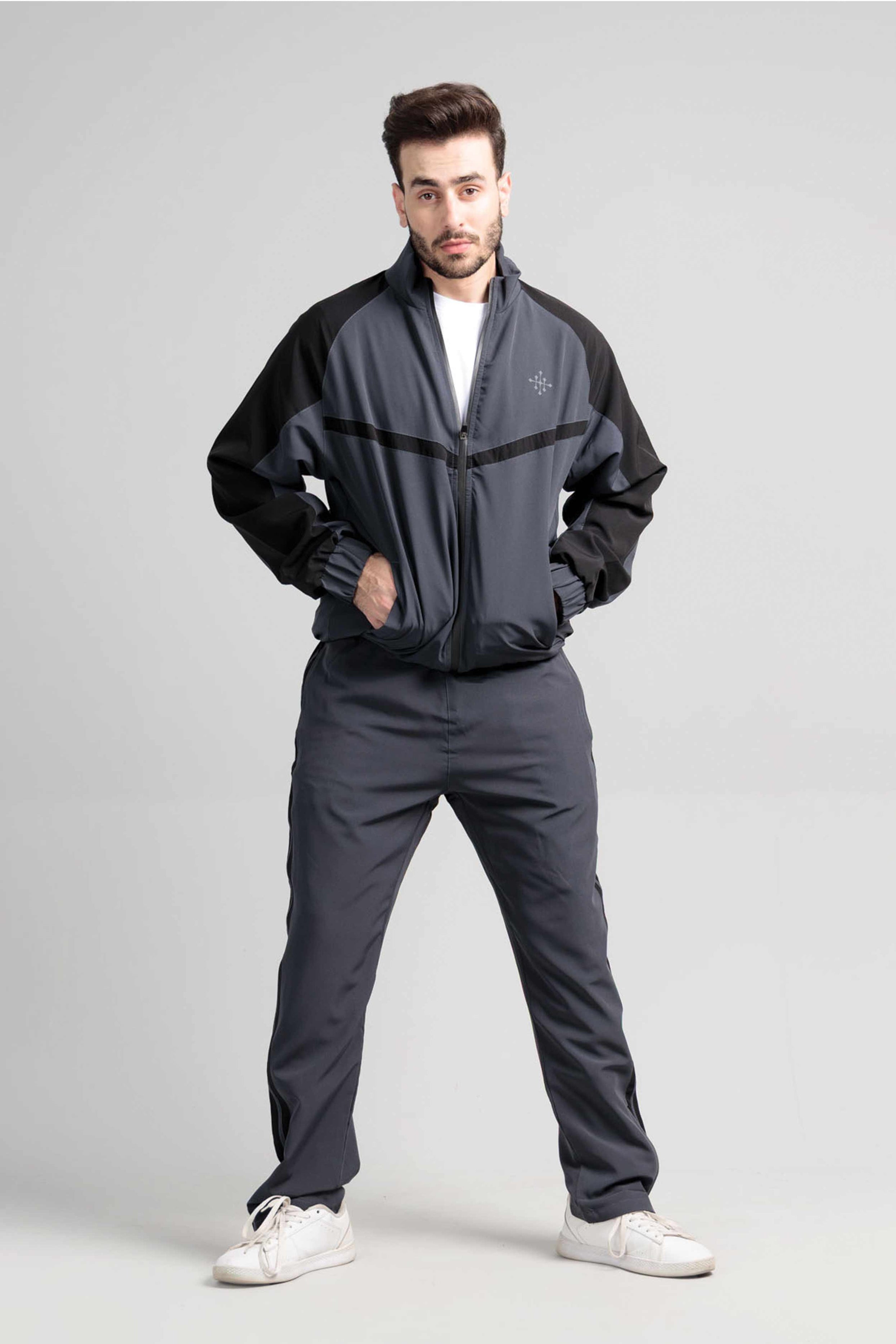 It's crafted from high-performance Micro Stretch fabric, a blend of 96% polyester and 4% Lycra (Spandex/Elastane). This composition offers superior four-way stretch, quick-drying properties, and a lightweight feel that moves with you, not against you. In a classic Charcoal color, this tracksuit offers a sharp, modern aesthetic.