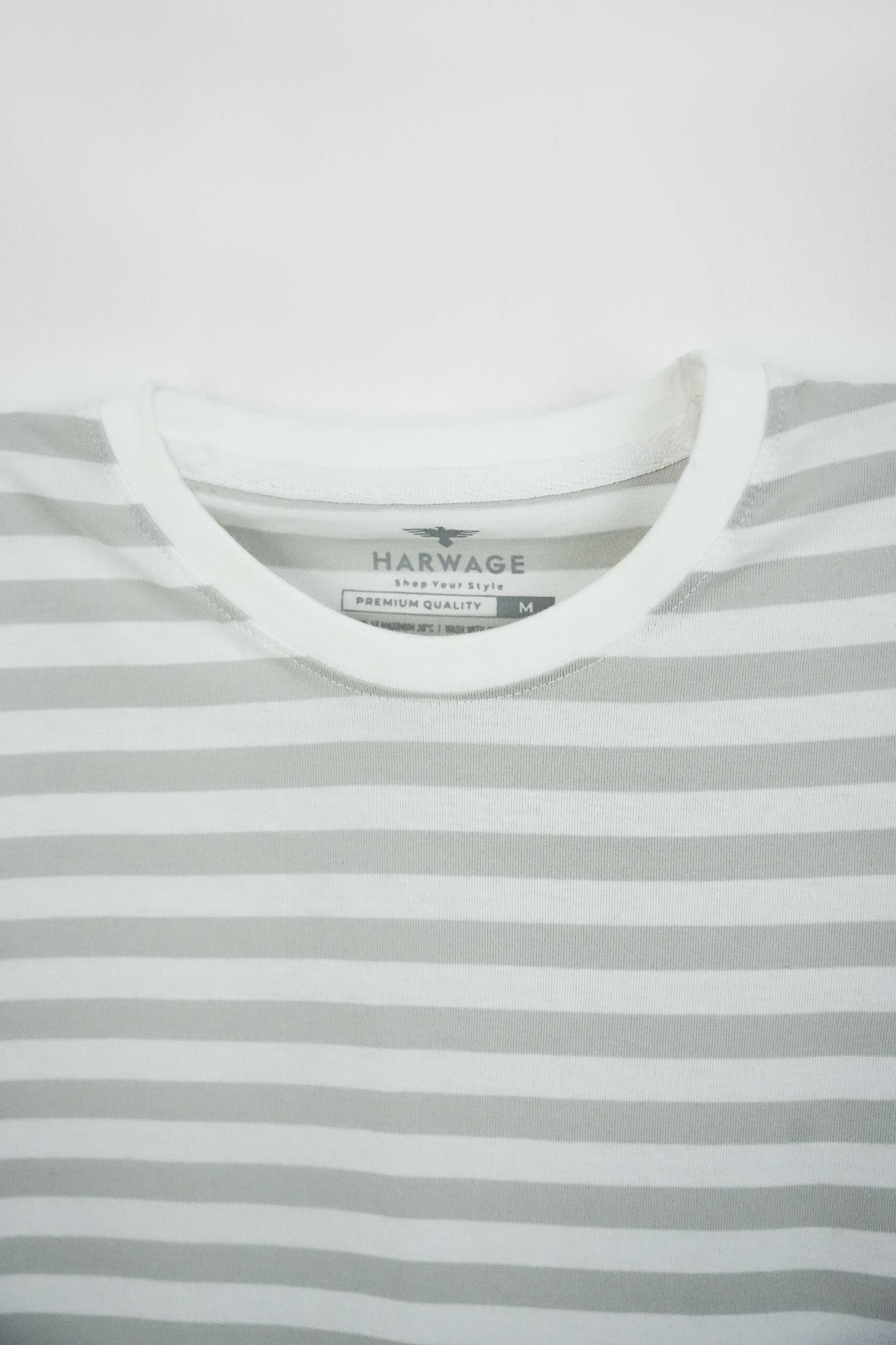 This tee is crafted from 100% pure cotton jersey, offering a soft, breathable feel that's perfect for everyday comfort. The subtle horizontal stripes in Oyster Mushroom (a sophisticated light grey/beige) offer a versatile, understated look that pairs effortlessly with denim, chinos, or shorts. It's the perfect choice for a refined, yet casual, weekend style.