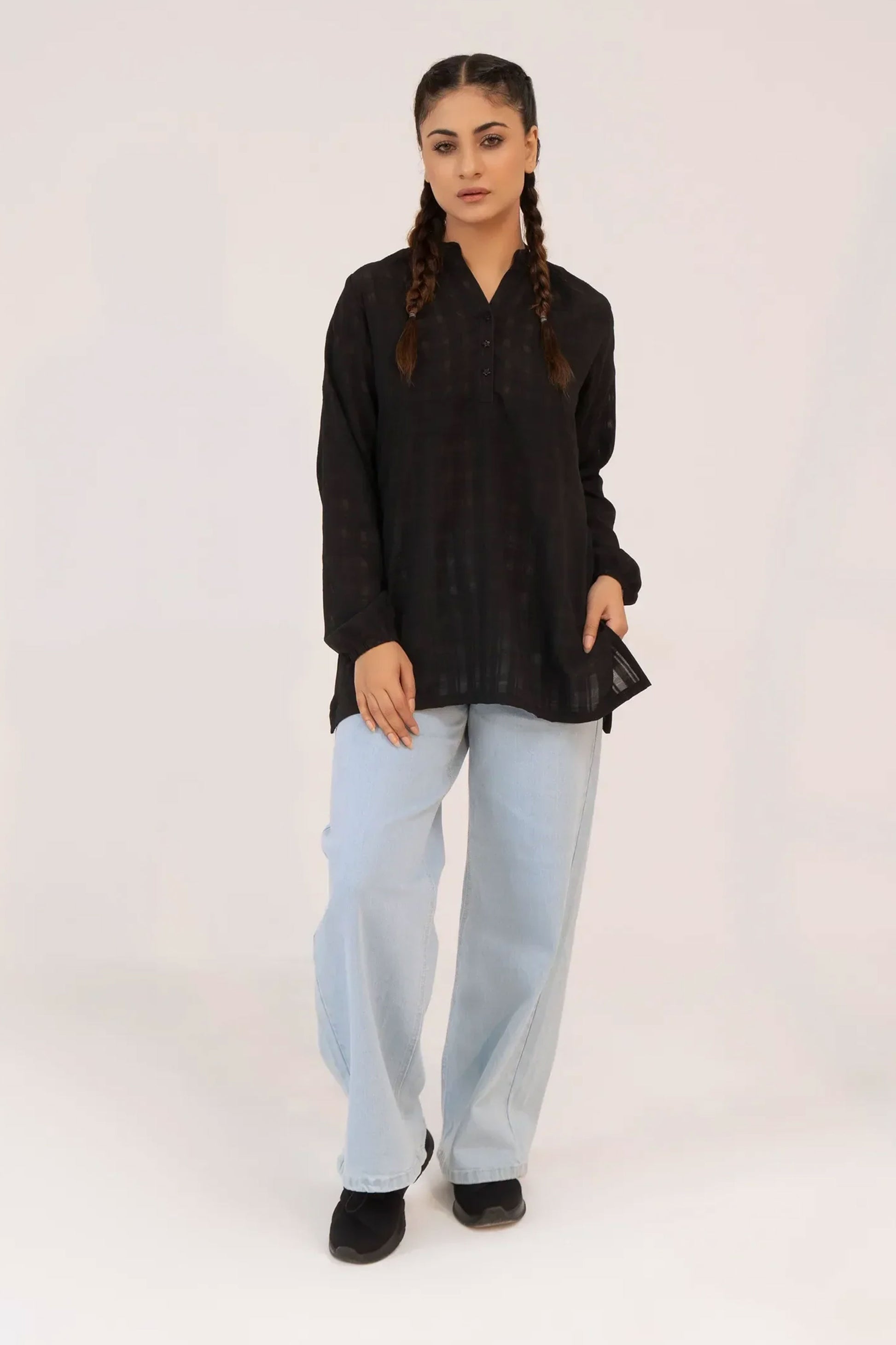 Introducing our Women's Black Ban Collar Dress Shirt, a perfect blend of sophistication and comfort. Crafted from lightweight, flowy georgette fabric, this shirt offers breathability and elegance, making it ideal for office wear or semi-formal events. The ban collar adds a modern touch to the classic design, providing a chic appearance. Its versatile black color ensures it pairs effortlessly with various bottoms, from tailored trousers to skirts, enhancing your wardrobe's flexibility.