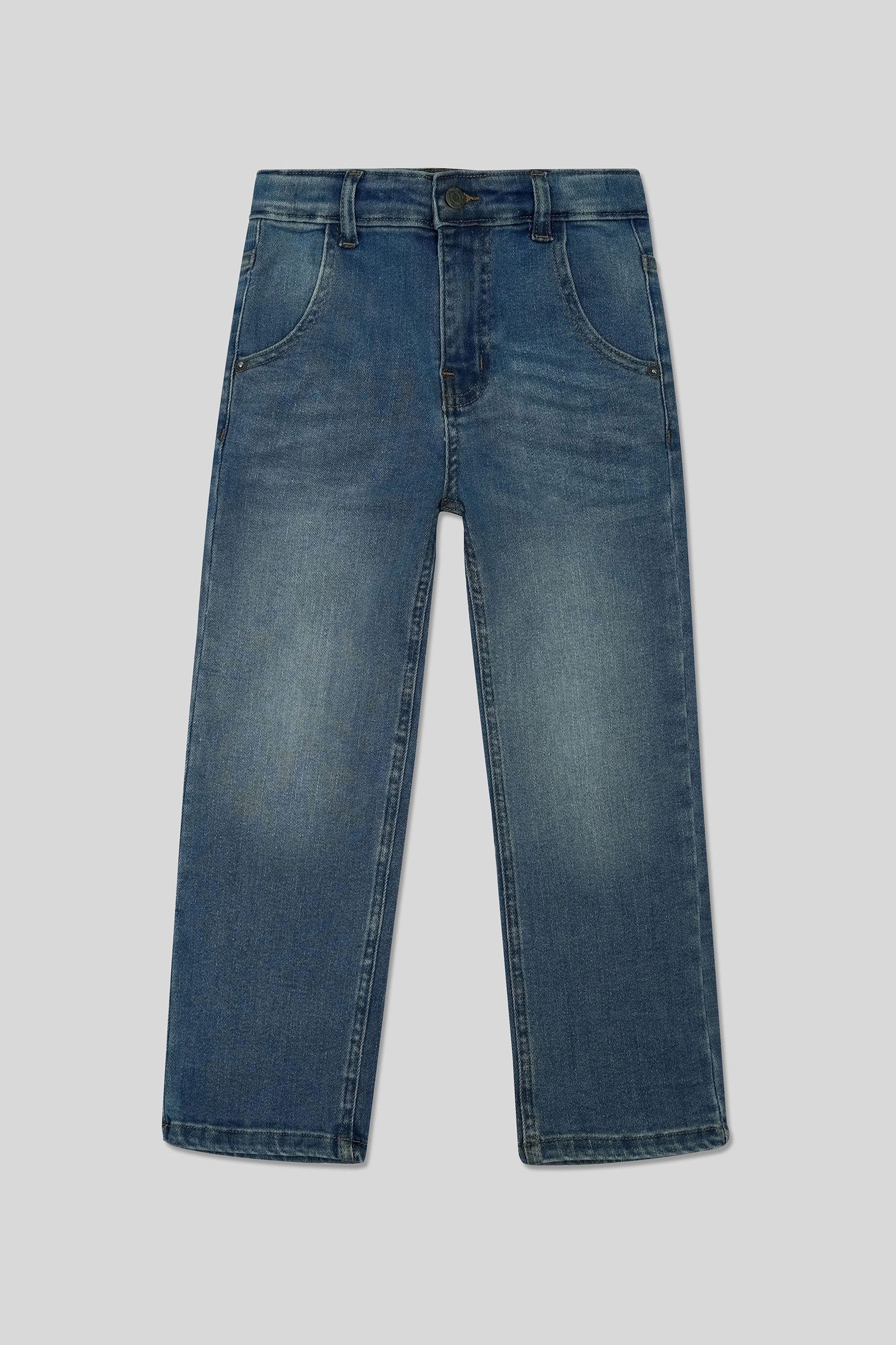 The straight-fit silhouette offers a timeless look that pairs effortlessly with tops, tunics, or sweatshirts — making it a must-have for everyday wear. The mid-blue wash adds a classic touch, ideal for school days, playtime, or casual outings.