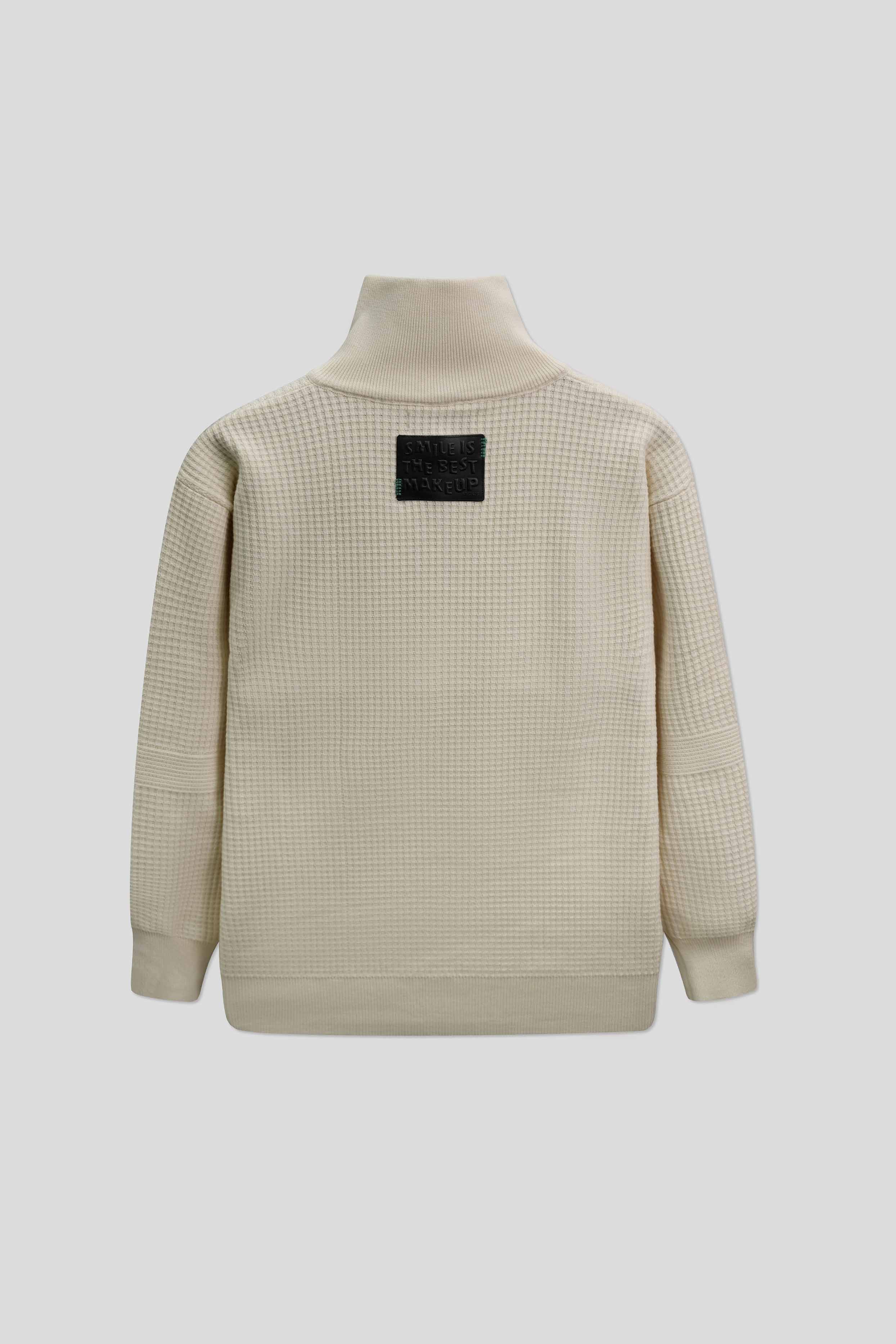 Crafted from high-quality wool, it delivers natural warmth, softness, and breathability, keeping you comfortable throughout the day. The elegant Off White color adds a clean, sophisticated touch, making this jersey easy to pair with denim, tailored trousers, or layered under jackets for a polished winter outfit.