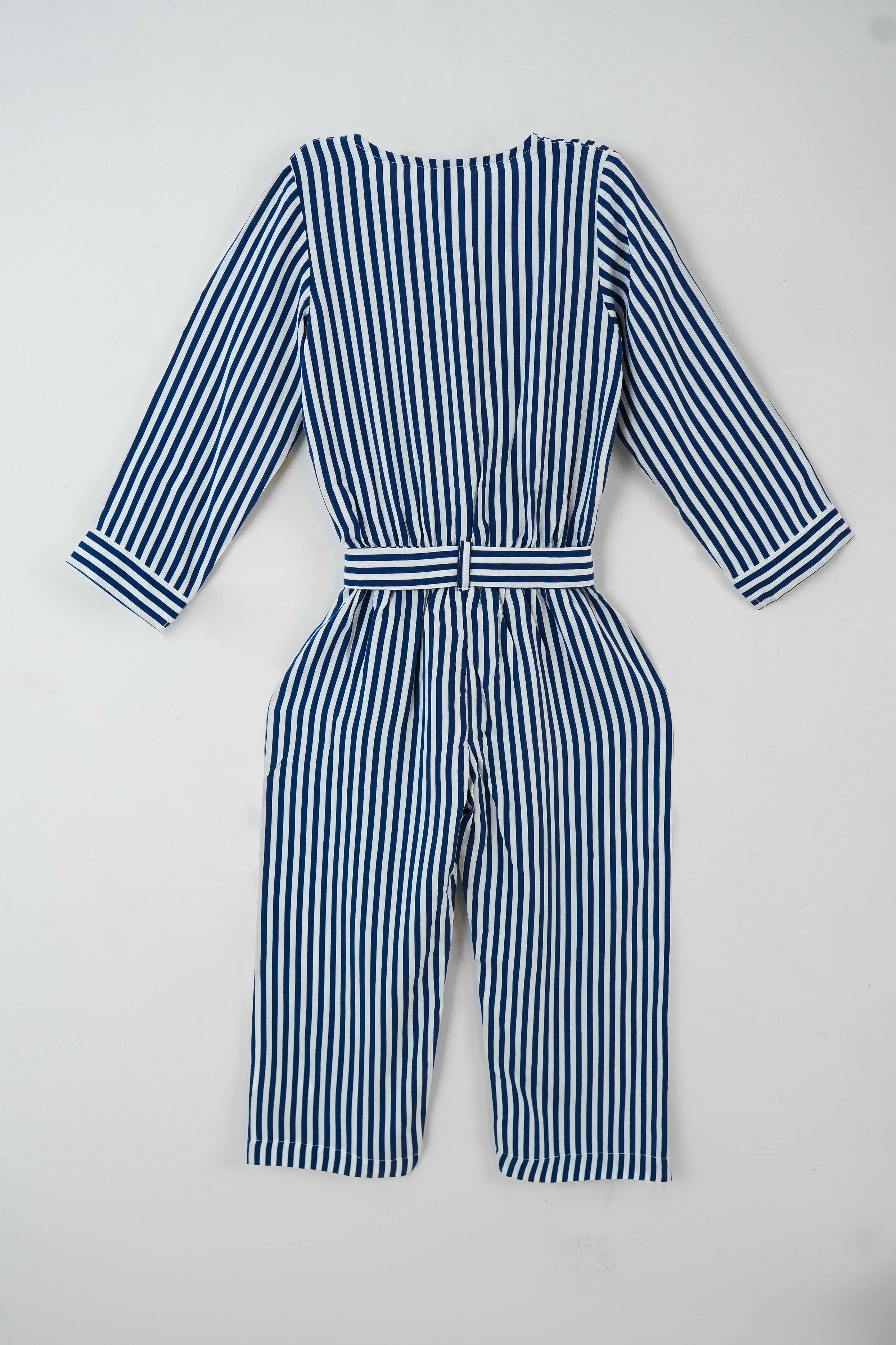 In a beautiful Blue color, this jumpsuit is a chic and simple option for any occasion. Its easy-to-wear design means she's ready in a flash, while the comfortable fit provides freedom of movement. Whether it’s for a family outing, a special occasion, or simply a fun day of play, this jumpsuit delivers effortless style.