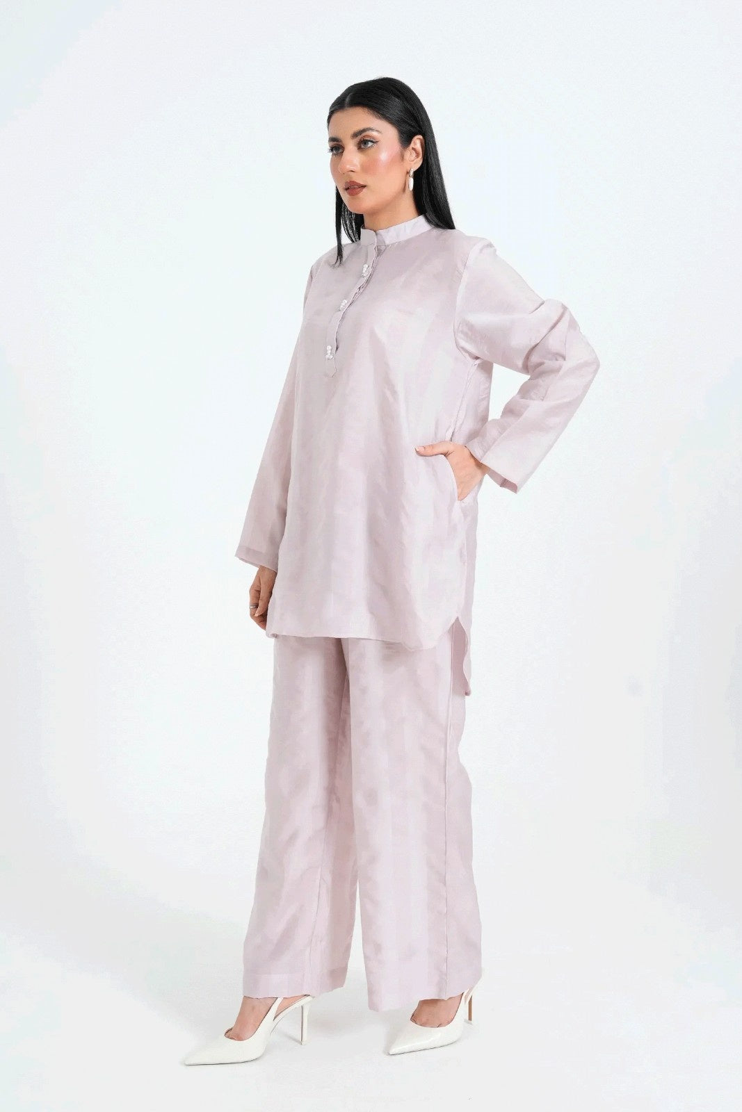 Designed with a flattering relaxed fit, this women soft pink co ord set Pakistan shoppers prefer can be styled up or down effortlessly. Pair it with sneakers and a tote for daytime wear or dress it up with heels and accessories for a refined casual look. It’s an ideal pink set online Pakistan choice for women who value versatility without compromising style.