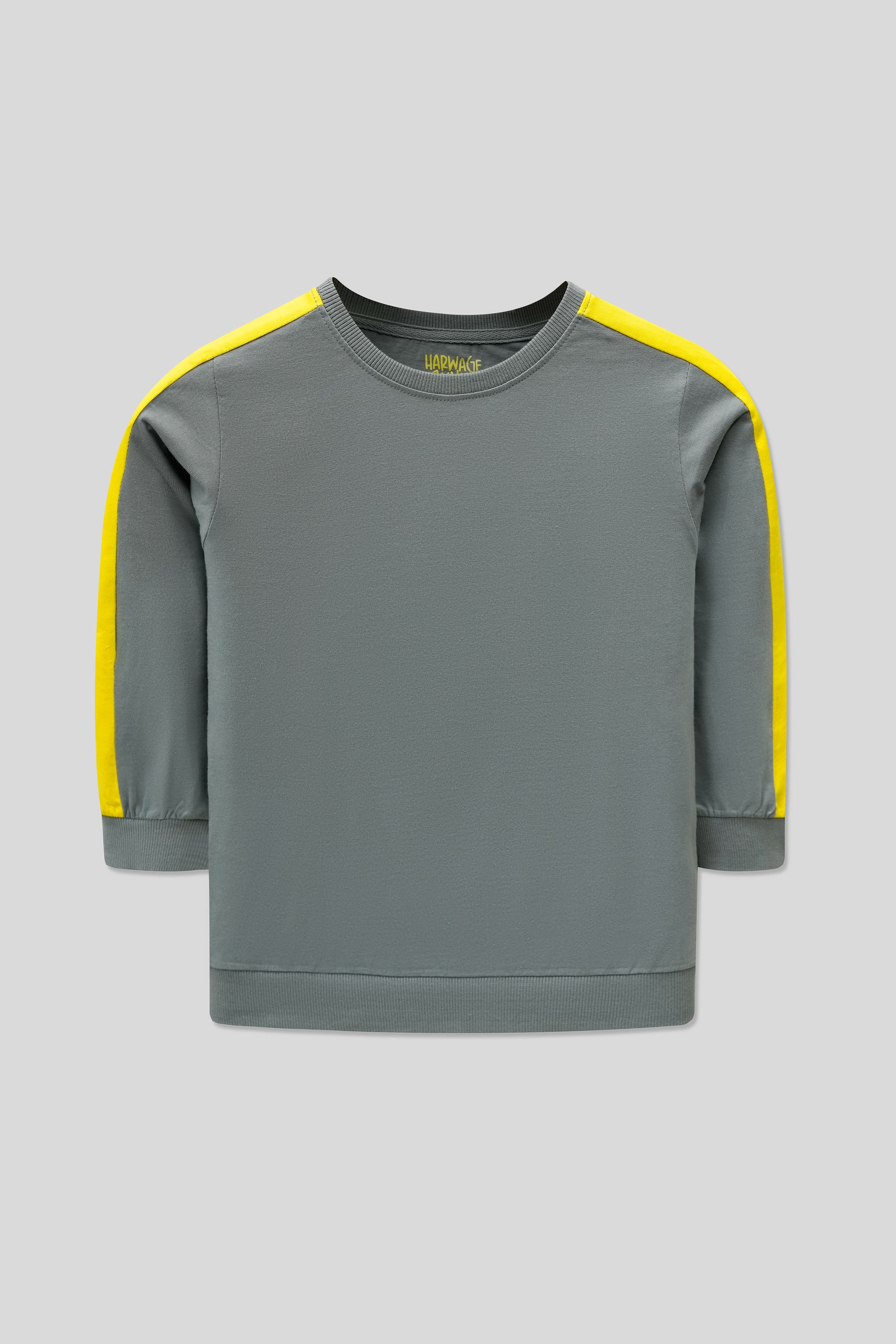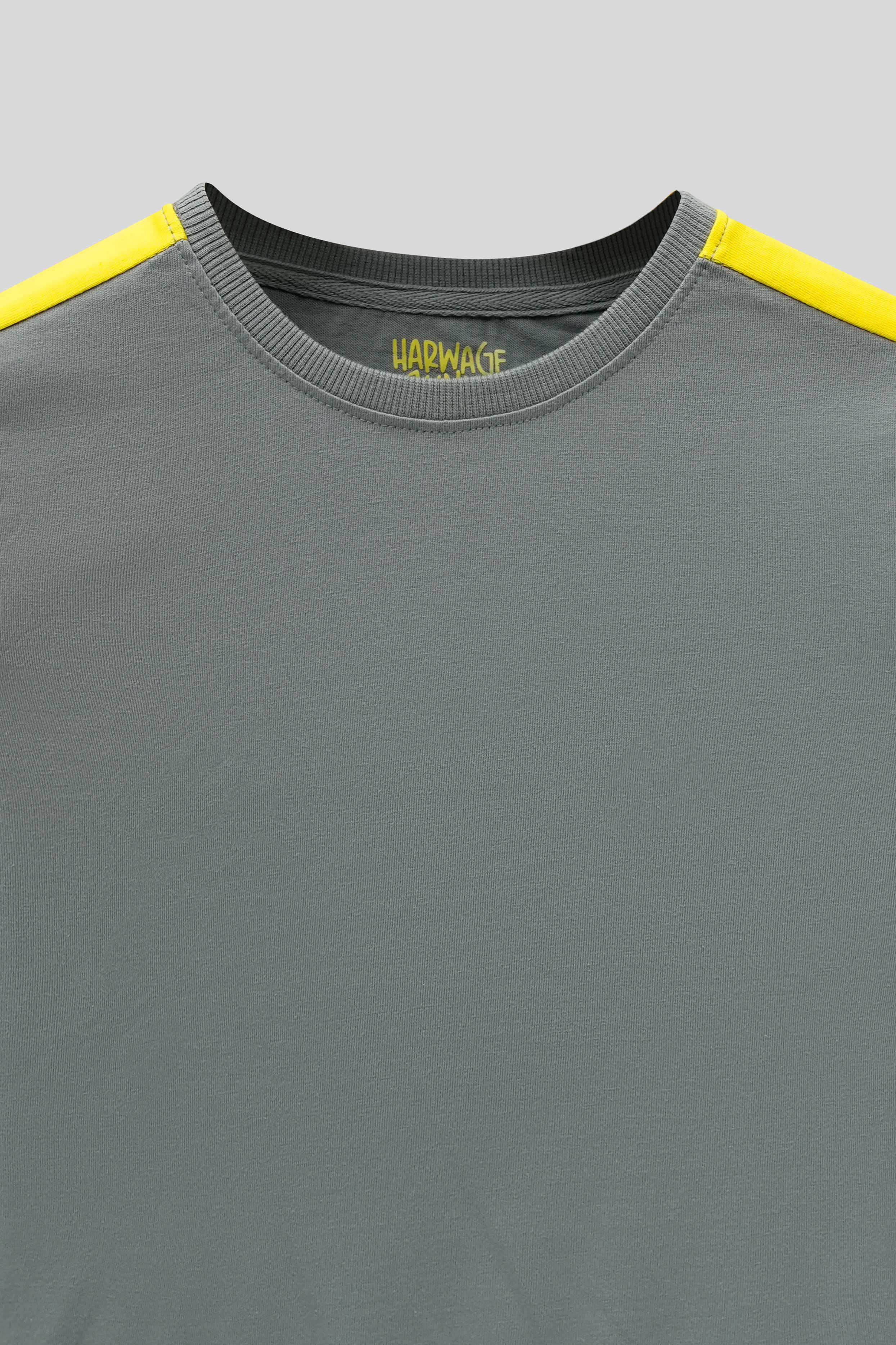 The matching top and bottom feature a clean, classic Neutral Grey color, creating a neat and coordinated look. Lightweight and easy to wear, this outfit is an ideal addition to any little boy’s wardrobe.