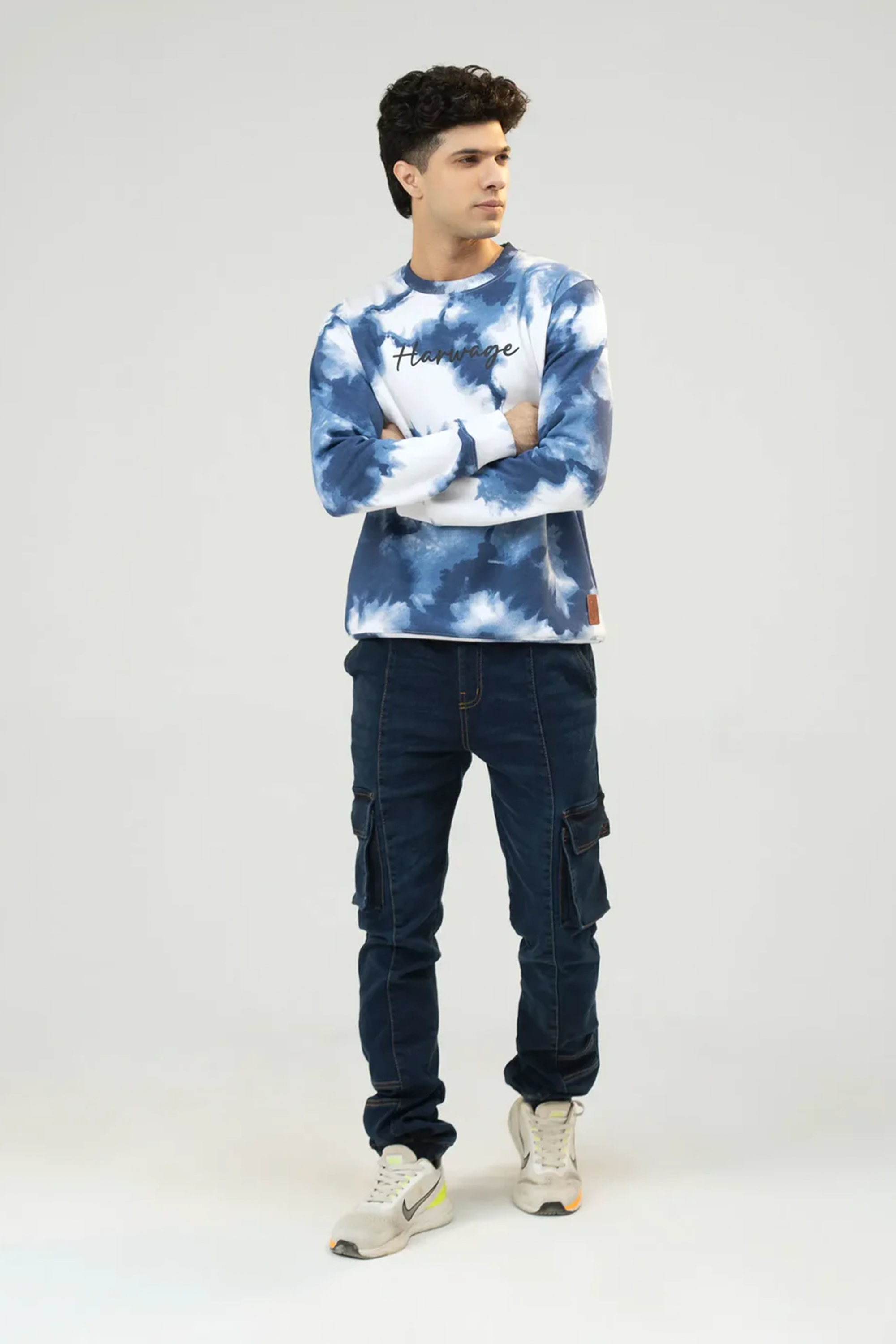 The standout feature of the Men Blue Regular Fit Sweatshirt is its unique blue tie-dye camouflage pattern, which adds a modern and edgy twist to a classic design. This bold pattern makes the sweatshirt a standout piece in any casual wardrobe. Allowing you to express your individual style effortlessly. It’s a great option for those looking to combine comfort with a contemporary flair.