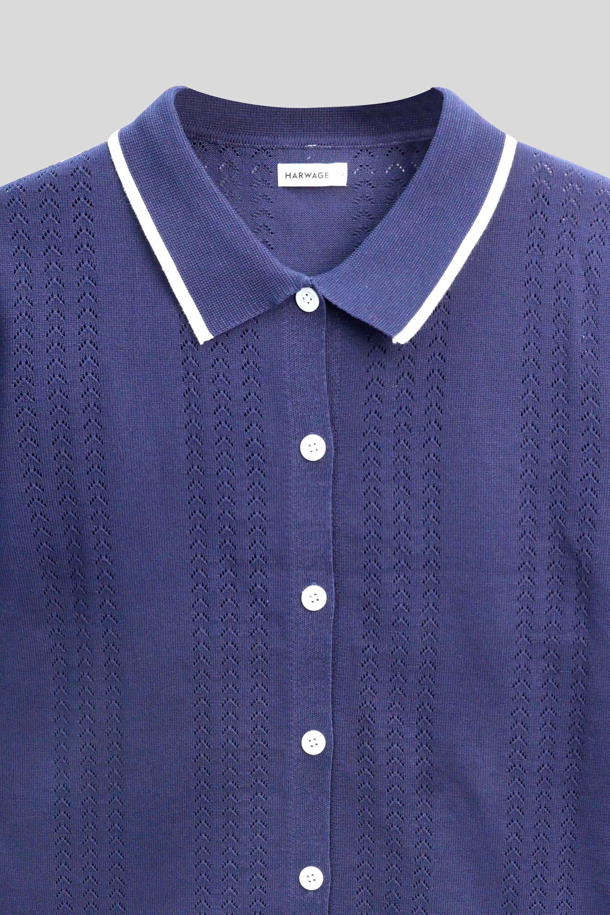 The classic button-down style adds a refined and polished look, allowing you to wear it both casually and formally. The deep navy color gives a timeless appeal that pairs easily with jeans, chinos, or dress trousers. You can style it on its own or layer it under a jacket or coat for a more complete winter outfit.