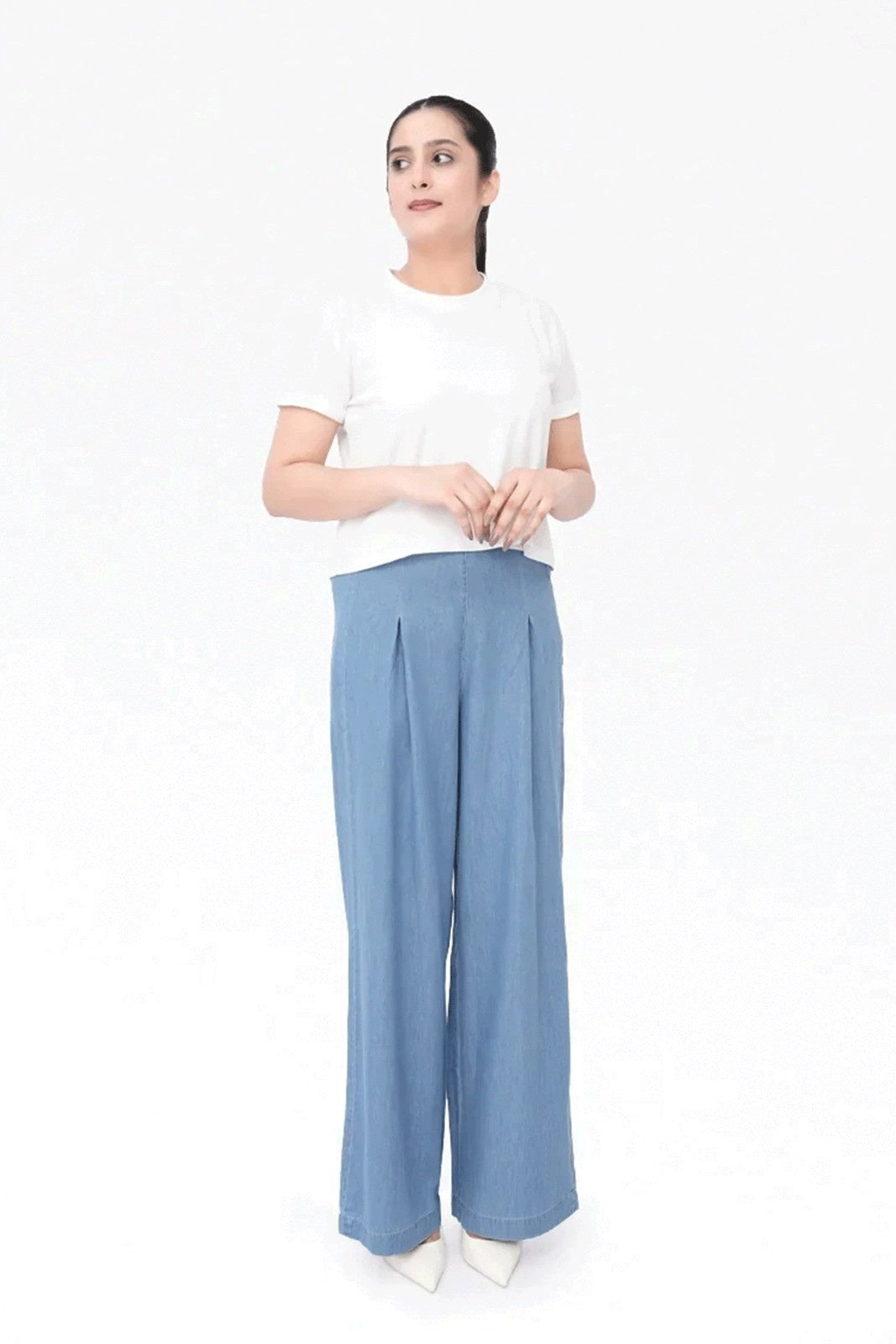 Designed as modern palazzo jeans online Pakistan shoppers can rely on, this style balances trend and practicality. The comfortable fit ensures all-day wearability, while the breathable denim construction makes these light blue wide leg pants price Pakistan buyers appreciate a dependable option for year-round styling.