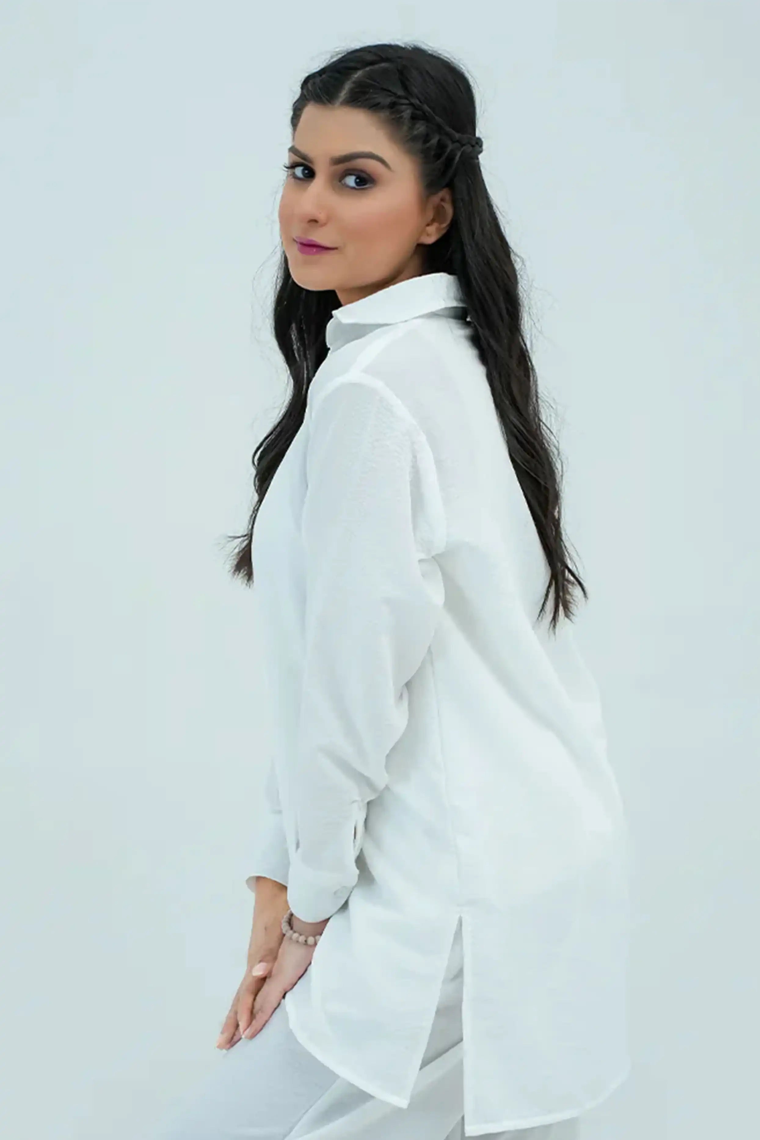 The crisp white shade offers endless styling possibilities, similar to classic men’s casual shirt Pakistan trends that focus on simplicity and versatility. Whether worn as a complete set or styled separately, it works effortlessly for lounging, errands, or relaxed social plans.